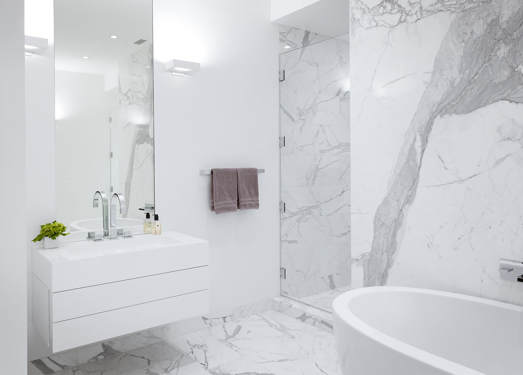The contrast between old and new is the dominating character of this loft. New materials and detailing are sleek and clean. Swedish beech wood planks flag the floors throughout. Marble slabs create counter tops, a spectacular bathtub backdrop and an impressive 10’ long fireplace. Custom pocket doors create flow and flexibility. New lighting coves add to the modern feel bringing ambient lighting to the large open rooms.
