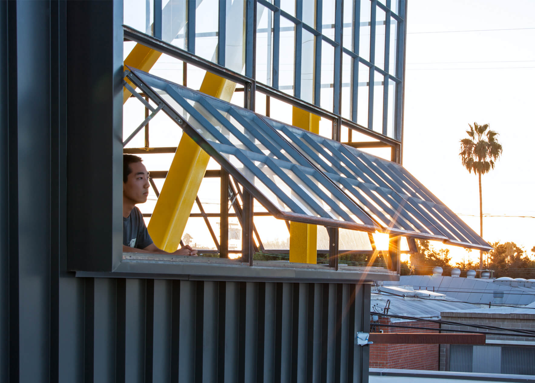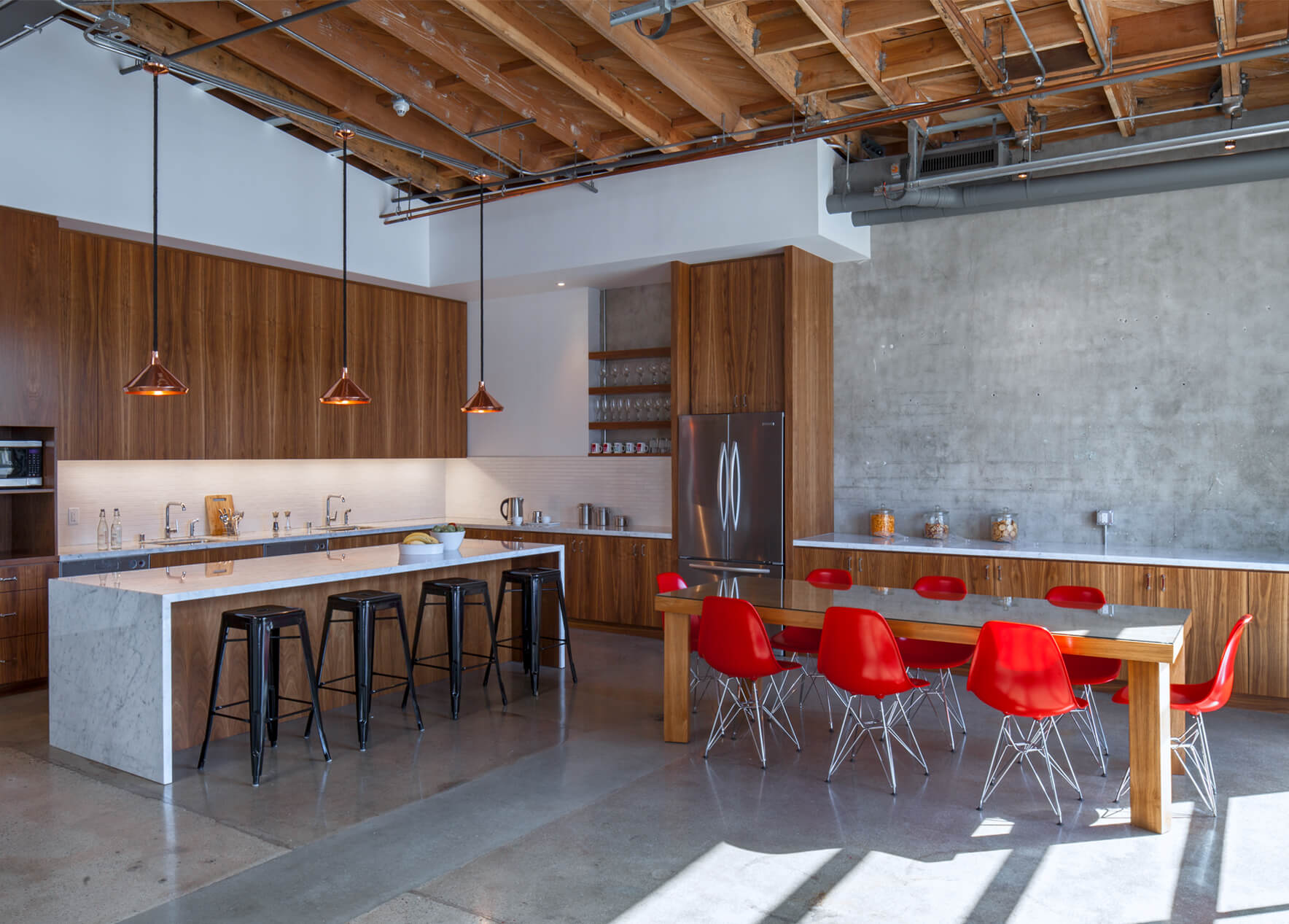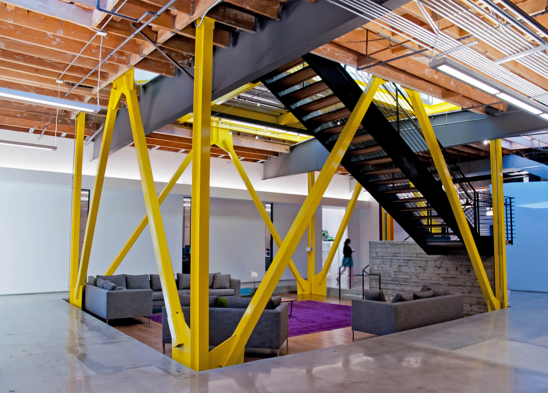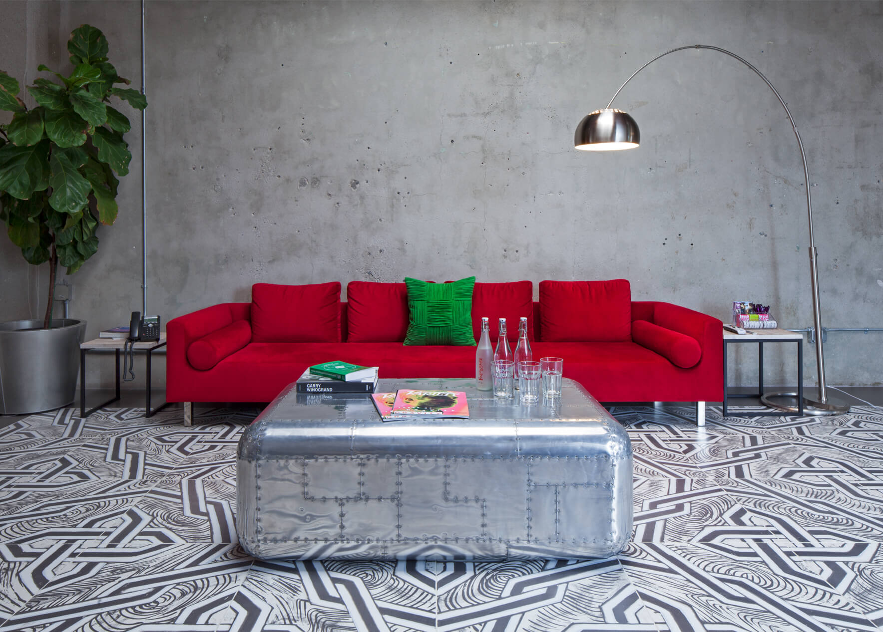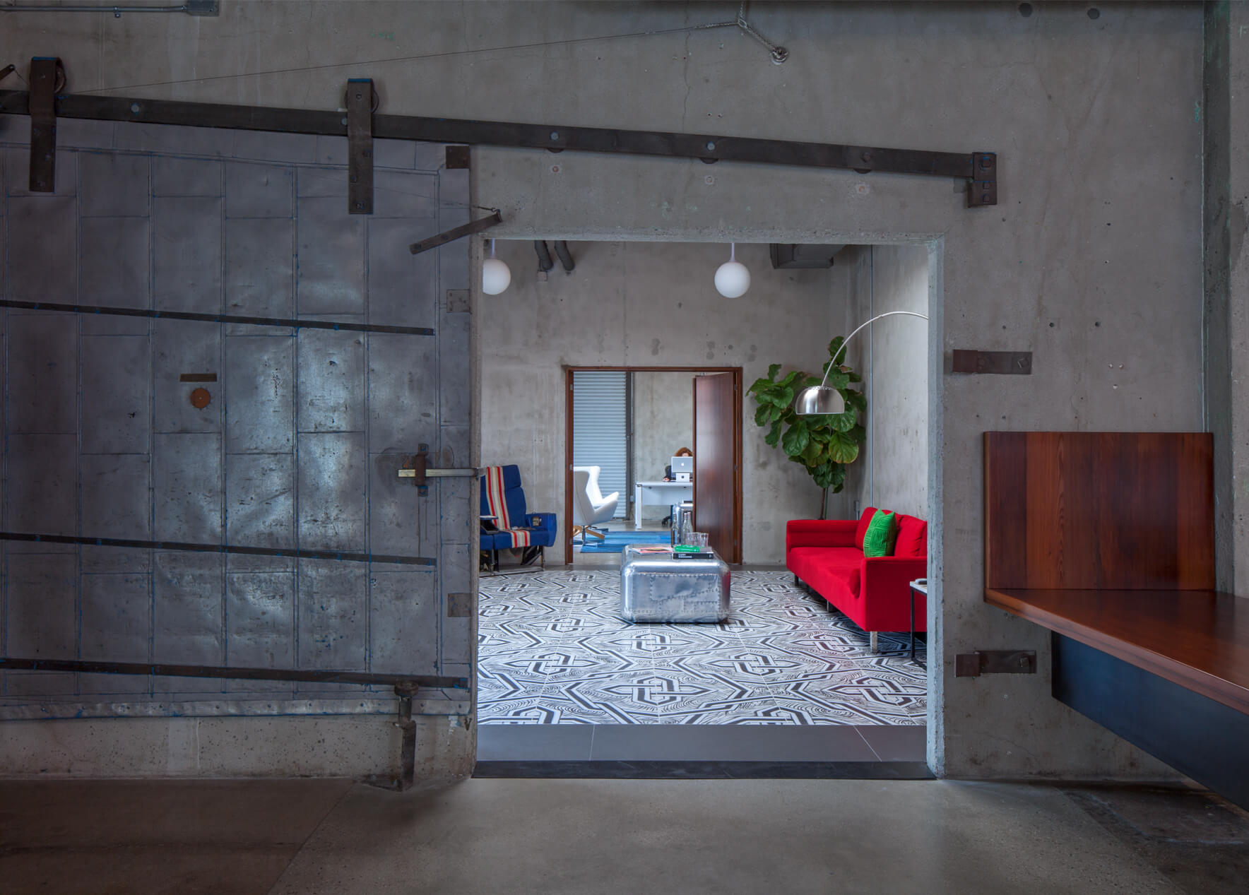 DHD has designed the previous four spaces occupied by Framestore in NYC SoHo district. We were asked to design the Framestore Los Angeles (Helm’s Ave / Culver City) location and collaborate with local architects RAC. While RAC Design Build focused on transforming the building’s Tower and Exterior Architecture, DHD concentrated on Framestore’s signature and Interior Architecture. The industrial building we converted had a past life as a fabric fire-retardant workshop, specializing in fire protection for the airline industry. The 50’ high tower, now a conference room and roof top hangout was where they hung the treated fabric to dry. Design features include defunct parking meters and NYC subway strap hangers. The client lounge was furnished with vintage TWA business class seats, complete with ashtrays.