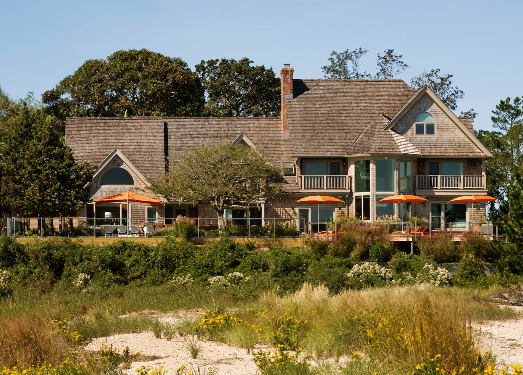 Building restrictions limited the architectural intervention to structural repair only for this Hamptons House. Within these parameters, the house was fully stripped down and its flow reoriented to the outdoors, with 280° views of the beach as well as the bay on a protected wetland site. The exterior was also uniformly re-shingled in natural cedar typical of the region.