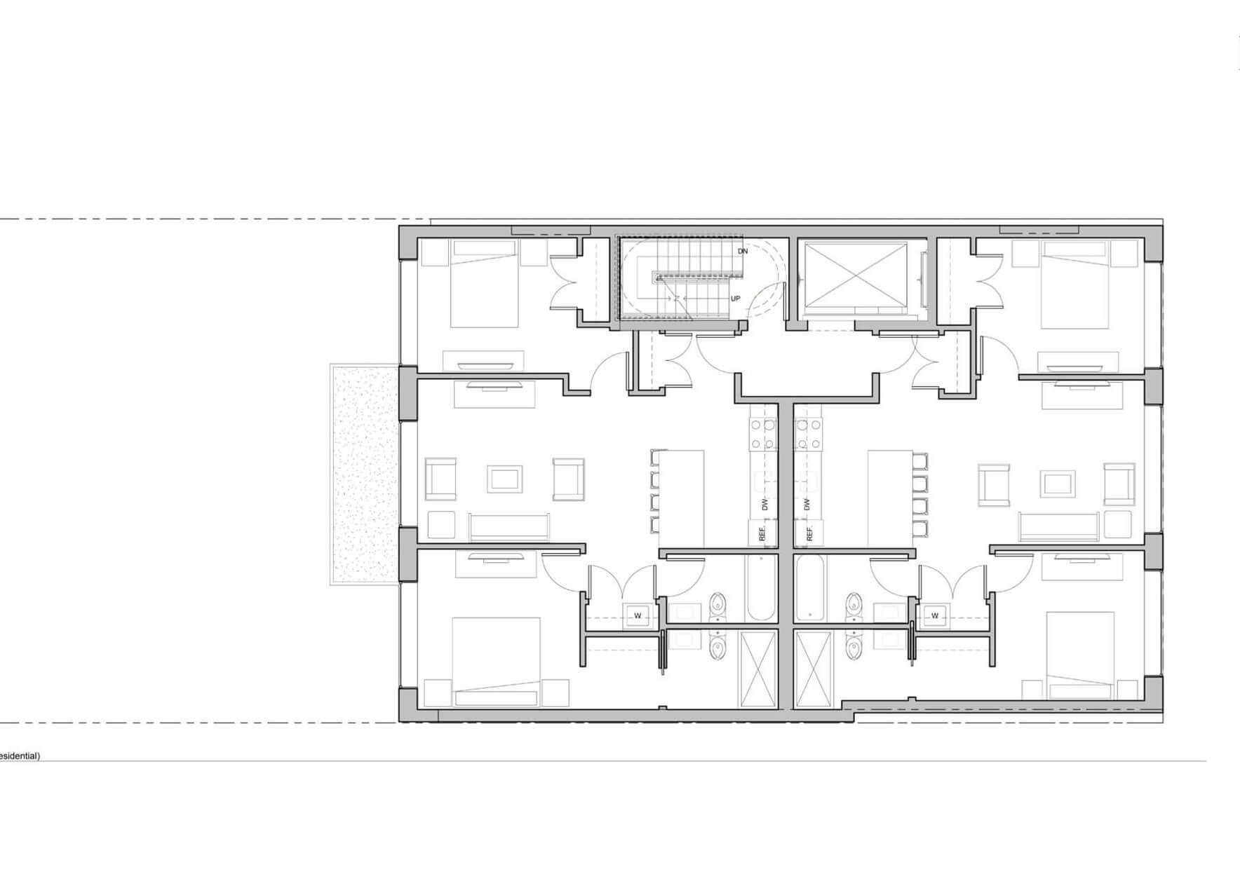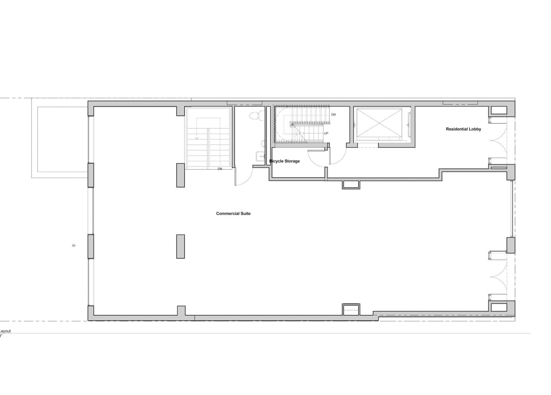 145 Ludlow Street – Lower East Side is a ground-up, six story, 8-family unit residential building featuring about 15,000 SF of space. This includes a commercial space on the first floor and cellar and two two-bedroom apartment units per floor on the upper levels. The penthouse consists of a two-level layout overlooking the surrounding roofscape. All apartments have access to storage units in the cellar, a bike room and a roof terrace that overs 360 degree views over the whole city. The apartments to the back have balconies towards the courtyard.