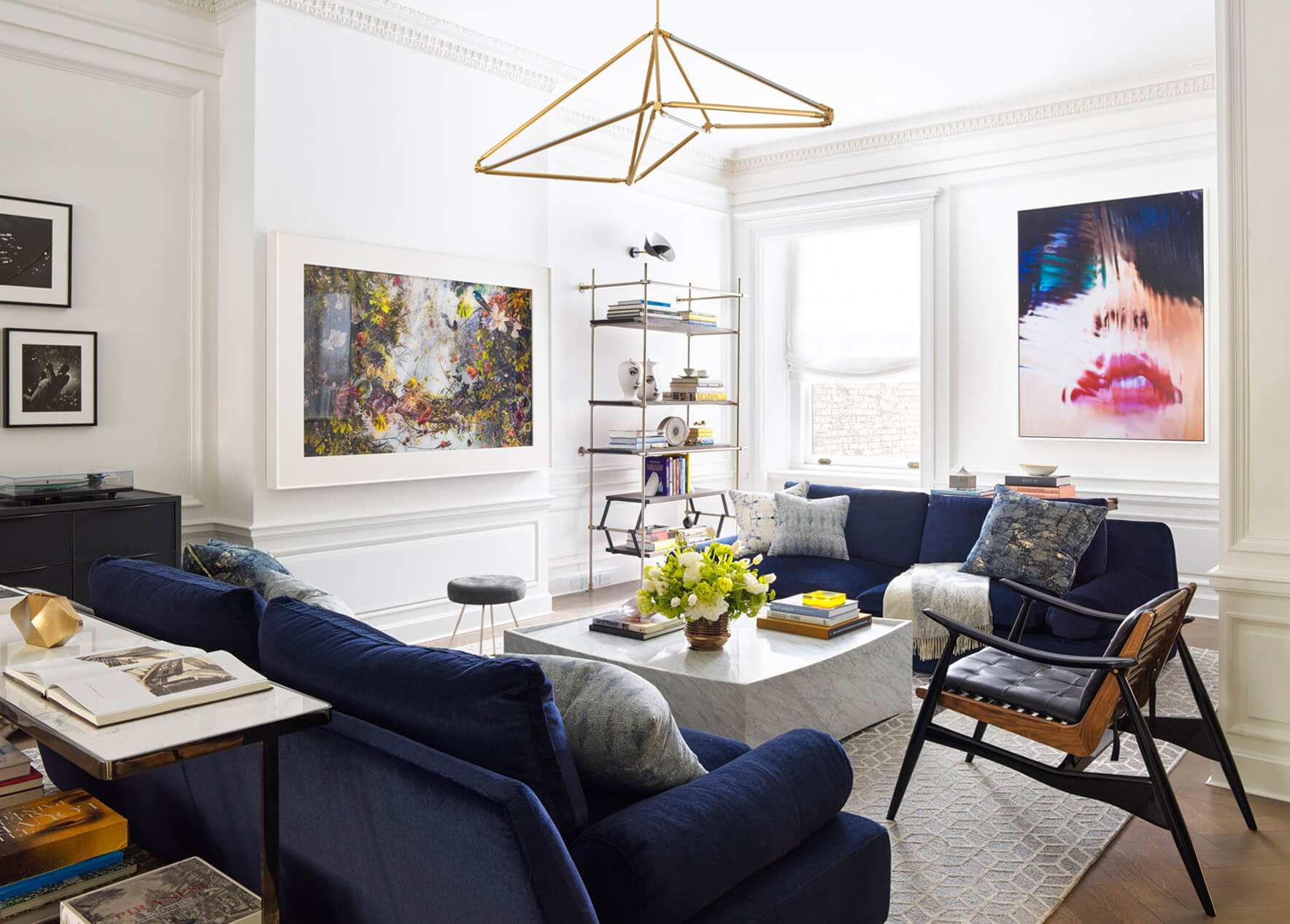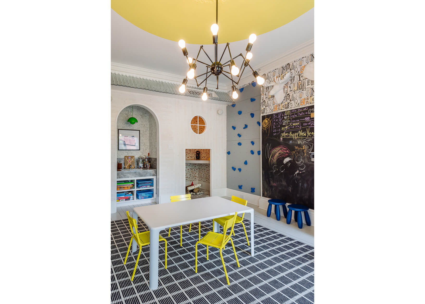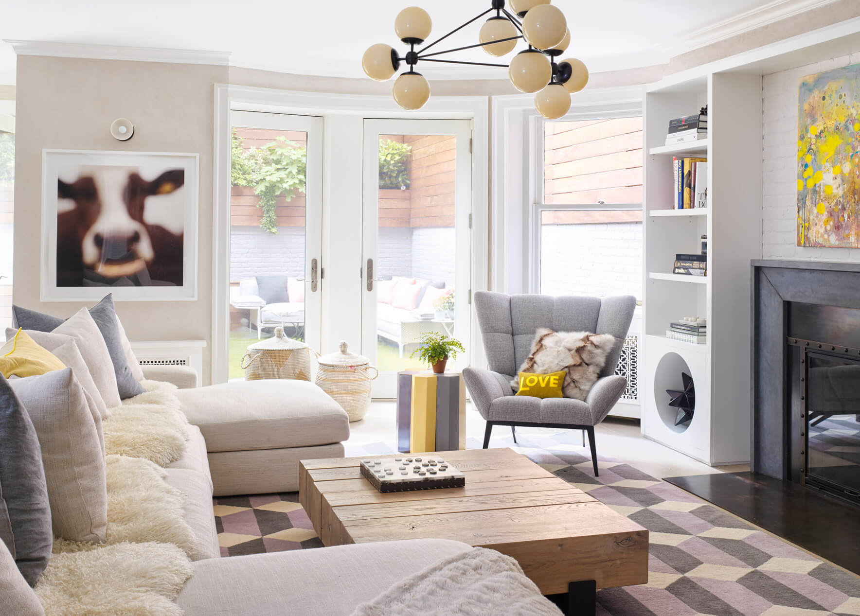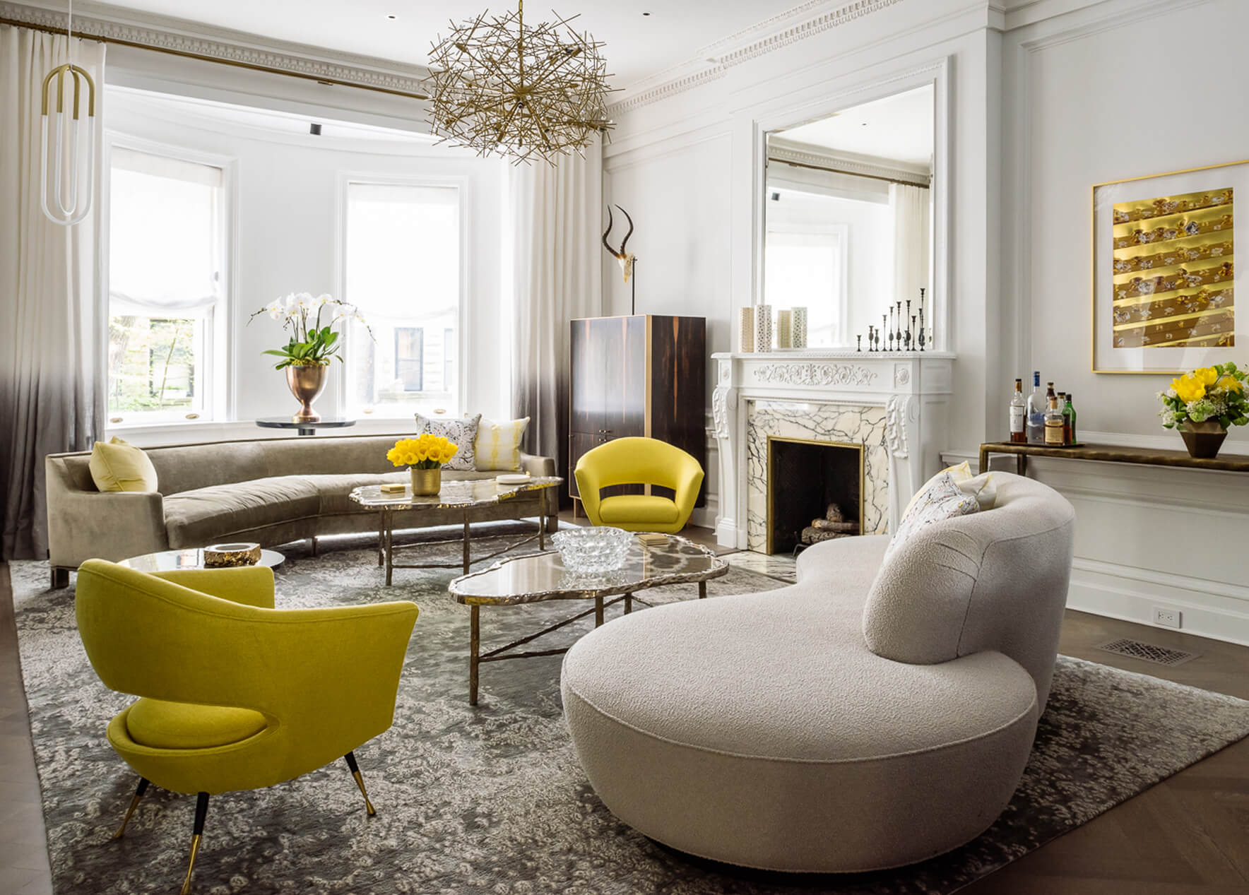 The unique and exclusive property on Montgomery Place, located between Eighth Avenue and Prospect Park West, was designed in 1898 by the architecture firm Babb, Cook & Willard. It contains an expansive seven bedrooms, five bathrooms, and two powder rooms. The firm was simultaneously working on the East 91st Street Andrew Carnegie Mansion during the period, and ensured the 30.5’ wide limestone at Montgomery Place would boast landmark historic details, including six fireplaces, an original Otis elevator, and a grand spiral staircase running across the four floors. After a two and half year renovation, which had modernized the home – adding five skylights, a wood burning fireplace, an outfitted butler’s kitchen and Waterworks fixtures throughout – the landmark mansion was sold in 2014. DHD Architecture and Interior Design were hired by the buyers, a young family who had moved from their Tribeca Loft, to further renovate and create a fresh, modern home, without compromising the structure’s historic features. The interiors were designed with a chic, bold, yet warm aesthetic in mind, mixing vibrant palettes into livable spaces.