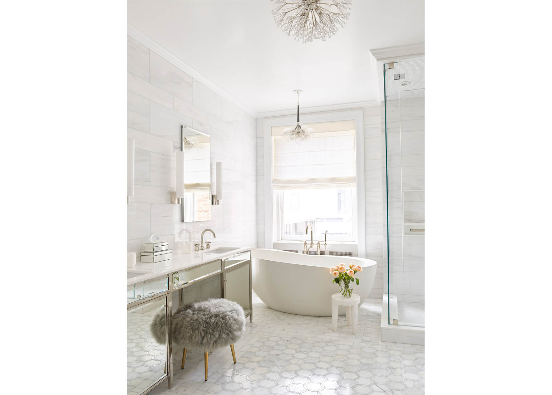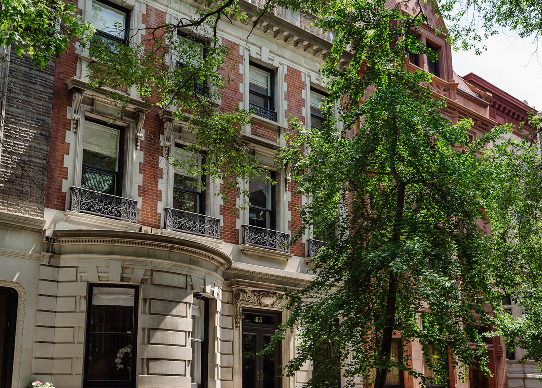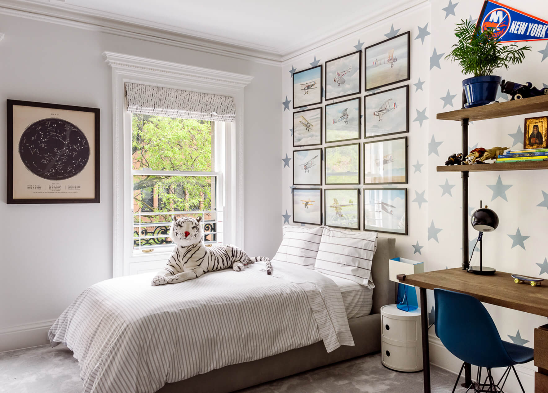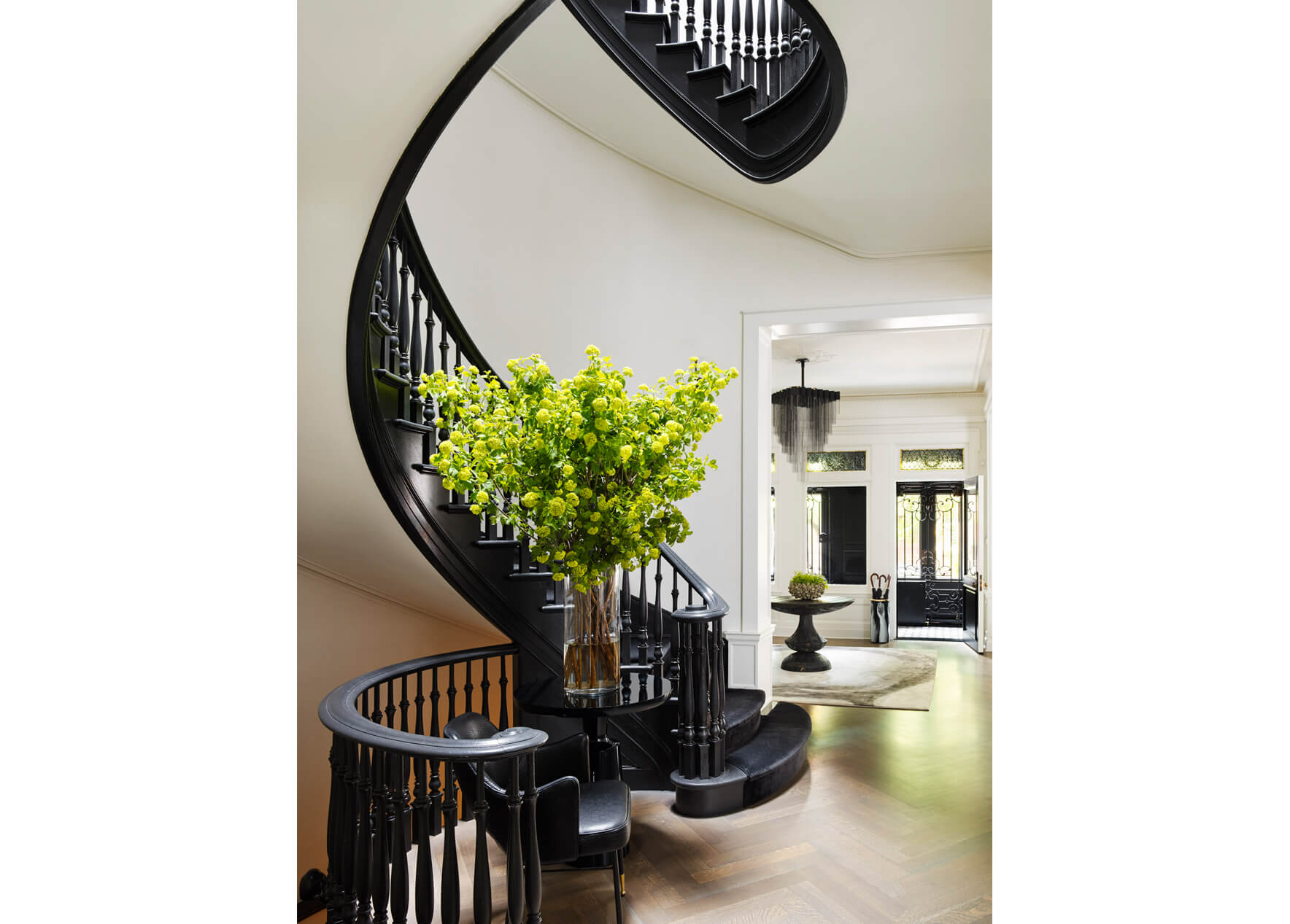 The unique and exclusive property on Montgomery Place, located between Eighth Avenue and Prospect Park West, was designed in 1898 by the architecture firm Babb, Cook & Willard. It contains an expansive seven bedrooms, five bathrooms, and two powder rooms. The firm was simultaneously working on the East 91st Street Andrew Carnegie Mansion during the period, and ensured the 30.5’ wide limestone at Montgomery Place would boast landmark historic details, including six fireplaces, an original Otis elevator, and a grand spiral staircase running across the four floors. After a two and half year renovation, which had modernized the home – adding five skylights, a wood burning fireplace, an outfitted butler’s kitchen and Waterworks fixtures throughout – the landmark mansion was sold in 2014. DHD Architecture and Interior Design were hired by the buyers, a young family who had moved from their Tribeca Loft, to further renovate and create a fresh, modern home, without compromising the structure’s historic features. The interiors were designed with a chic, bold, yet warm aesthetic in mind, mixing vibrant palettes into livable spaces.