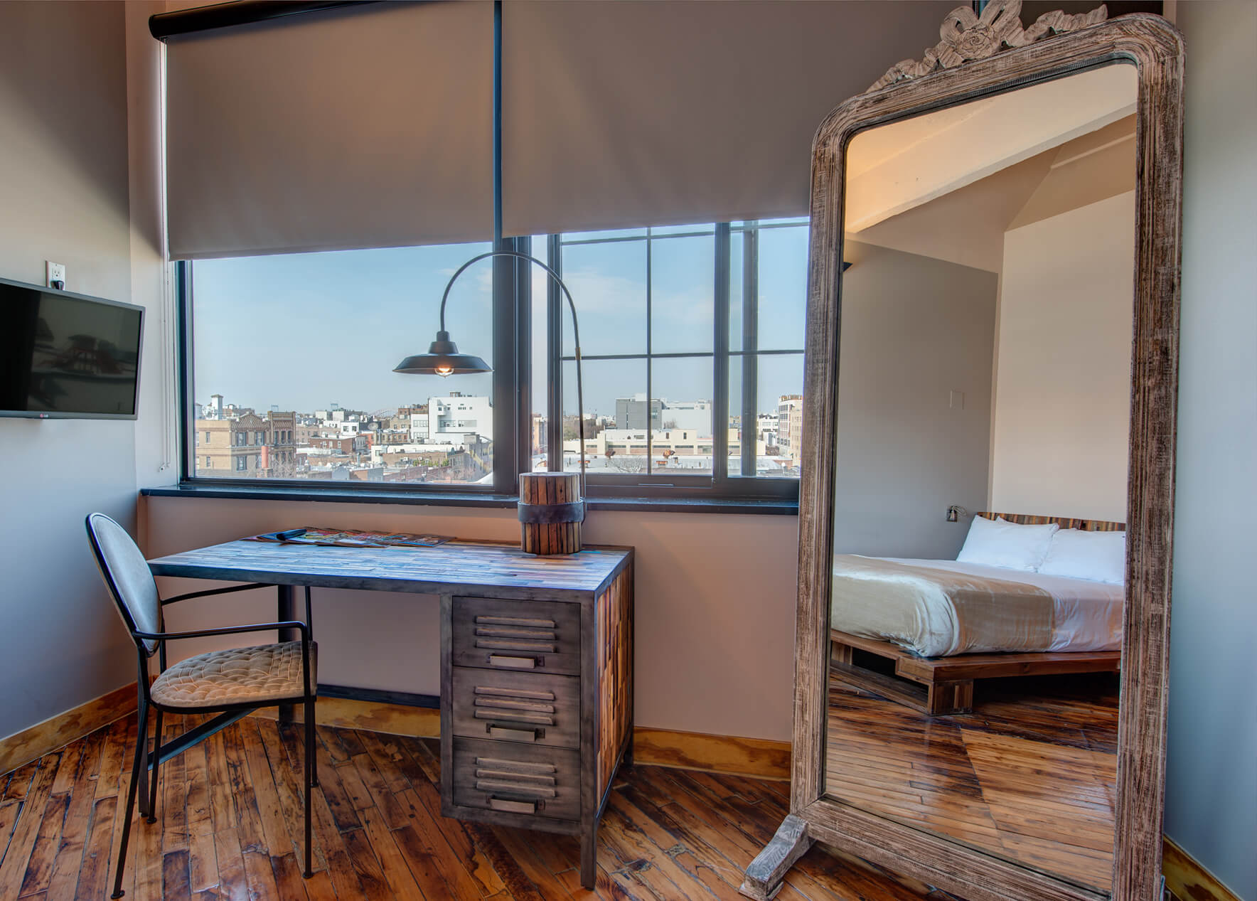 The Paper Factory Hotel has defined the ultimate New York City boutique hotel experience. In the heart of Long Island City’s urban scene, at the crossroads of the charming Kaufman Art’s District and trendy Astoria, The Paper Factory Hotel is an ideal choice for the seasoned business traveler as well as the lifestyle-driven tourist eager to access the vibrant city. This one-of-a-kind hotel caters to the value-minded, yet stylishly distinguished guest. The Paper Factory Hotel’s impeccably chic décor and thoughtful service, all punctuated with a touch of savoir vivre, embodies all that is Long Island City: cultured, eclectic, and undeniably fashionable. This is the New York of modern yore, a mecca for the world’s trendsetters in fashion, film, food, and art.” – via The Paper Factory Hotel