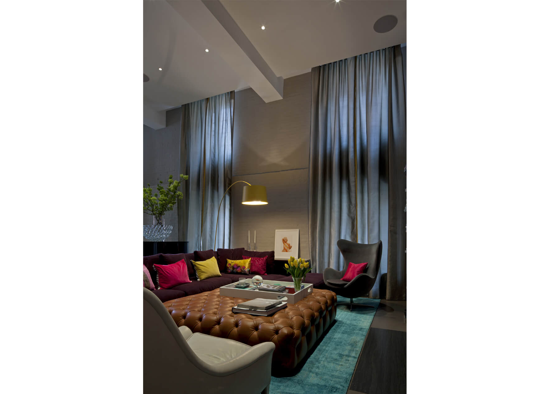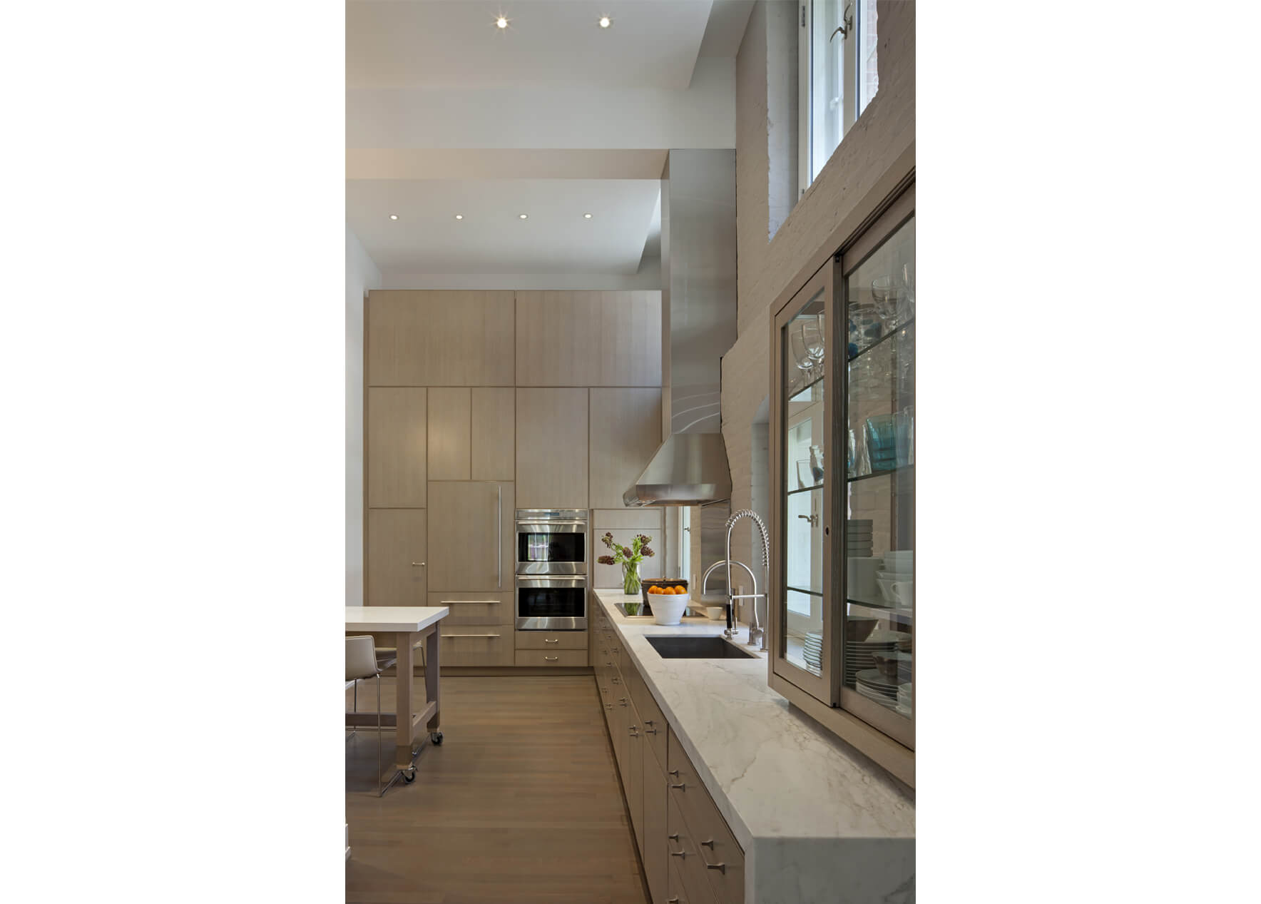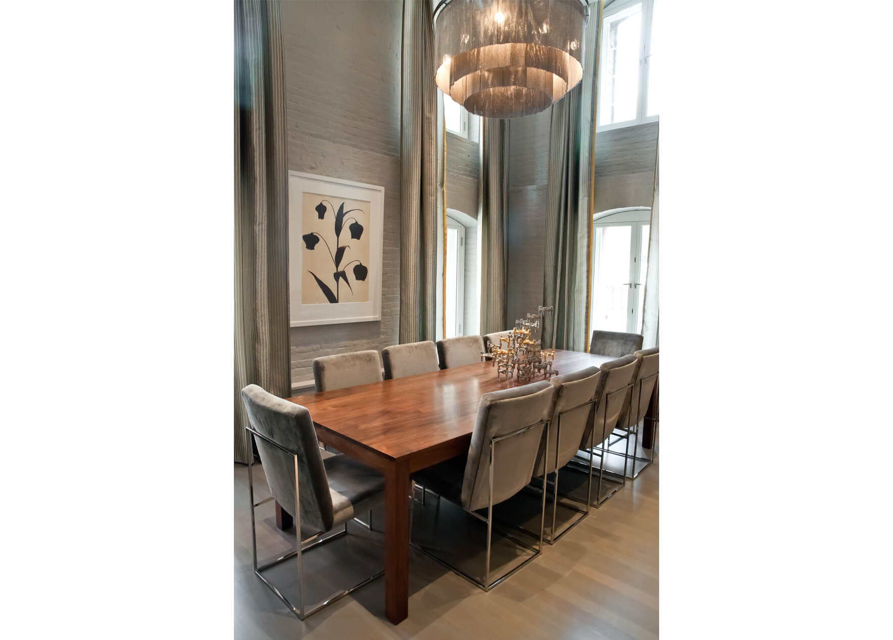 For this Tribeca apartment, the first action was to reclaim some classic loft elements that had been obscured. Exterior brick was exposed and the grand height was accentuated. A key component was a generously large kitchen for the chef owner. Additionally, the master bathroom was pulled from the small-scale interior of the apartment into the prime space with high ceilings. With small windows in the massive brick façade, natural light was limited. New lighting throughout helps supplement the limited daytime sun while creating a warm inviting setting at night. 1853 Sugar Refining Warehouse, the warehouse-turned-Tribeca loft in NYC, has undergone extensive renovation in the past few years. Renovating the space was a difficult task because of the building’s unique layout and landmark status. The interiors were designed by Steffani Aarons in close collaboration with our client. www.thesugarwarehouse.cityrealty.com