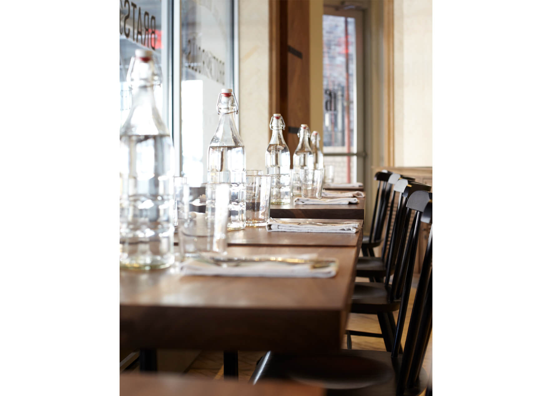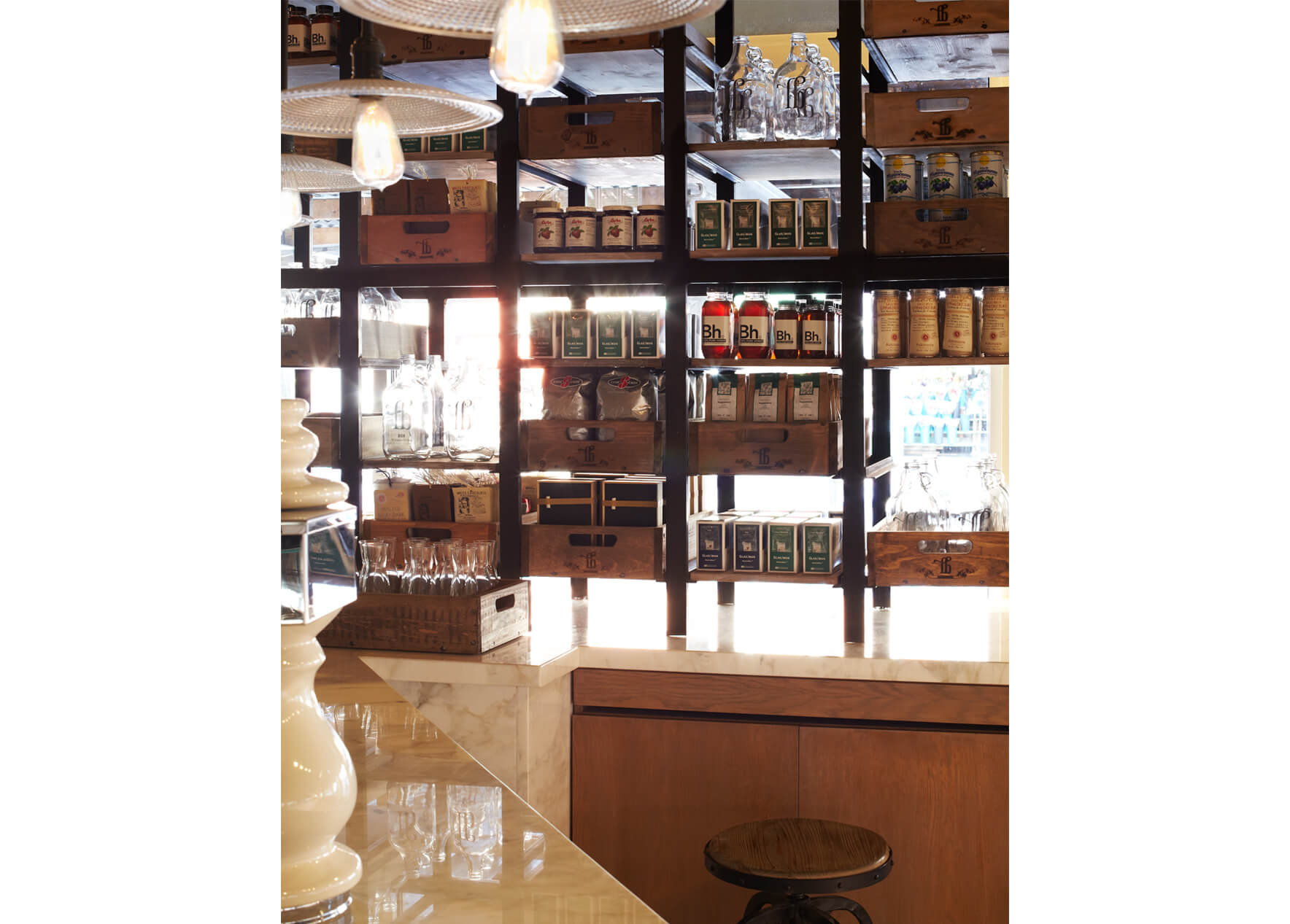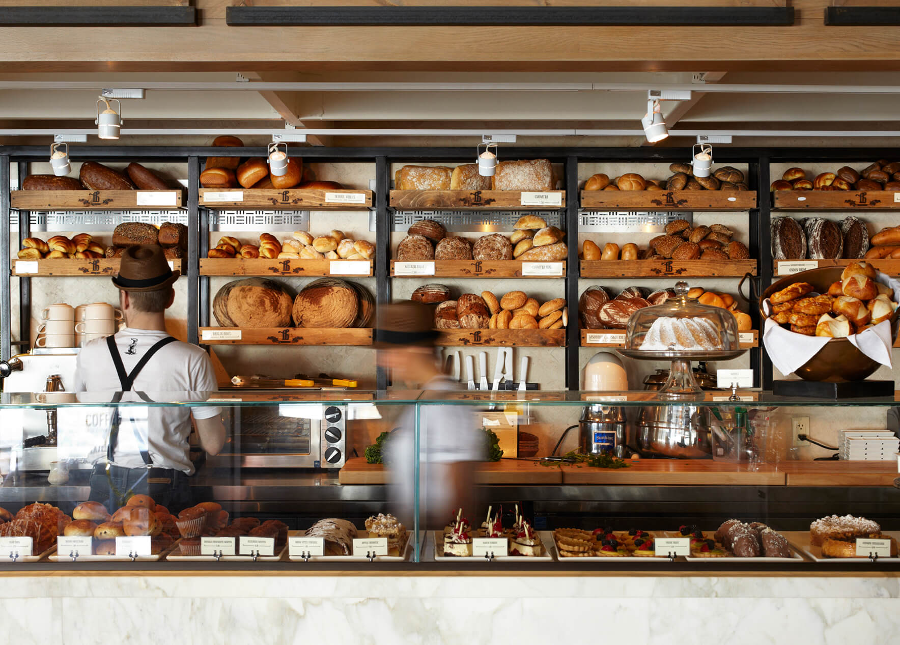 The project was a full interior and exterior gut of a long-vacated night club in the West Village of Manhattan. The new retail design incorporated a sales floor at street level, additional seating at a mezzanine level, and a top floor on-site bakery. The design integrates classic West Village café elements with subtle nods to the traditional Bavarian architecture near the owner’s home. A reinterpretation of a baker’s rack becomes a focal point in the double-height space along the display window. Rustic wood, blackened steel, and marble are used extensively to create the balance of organic and industrial elements.