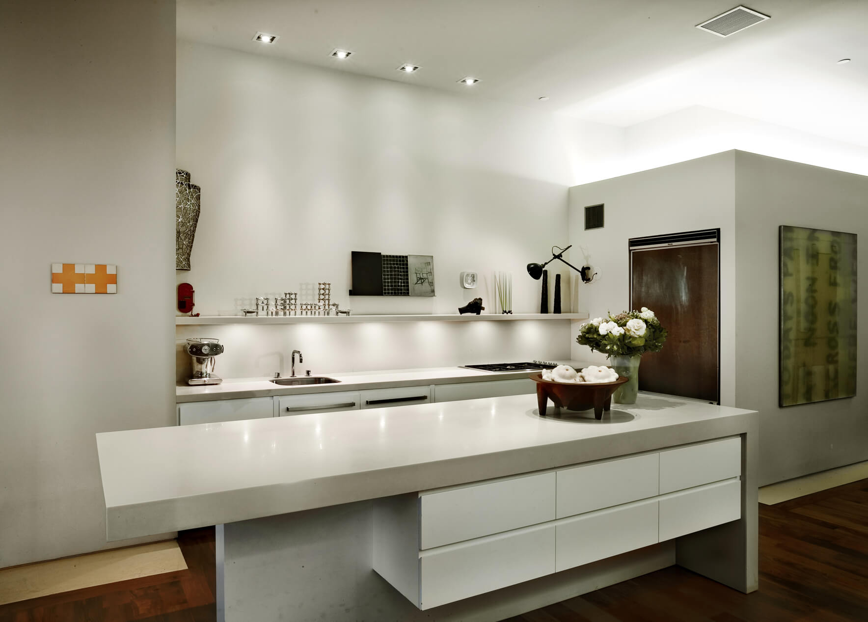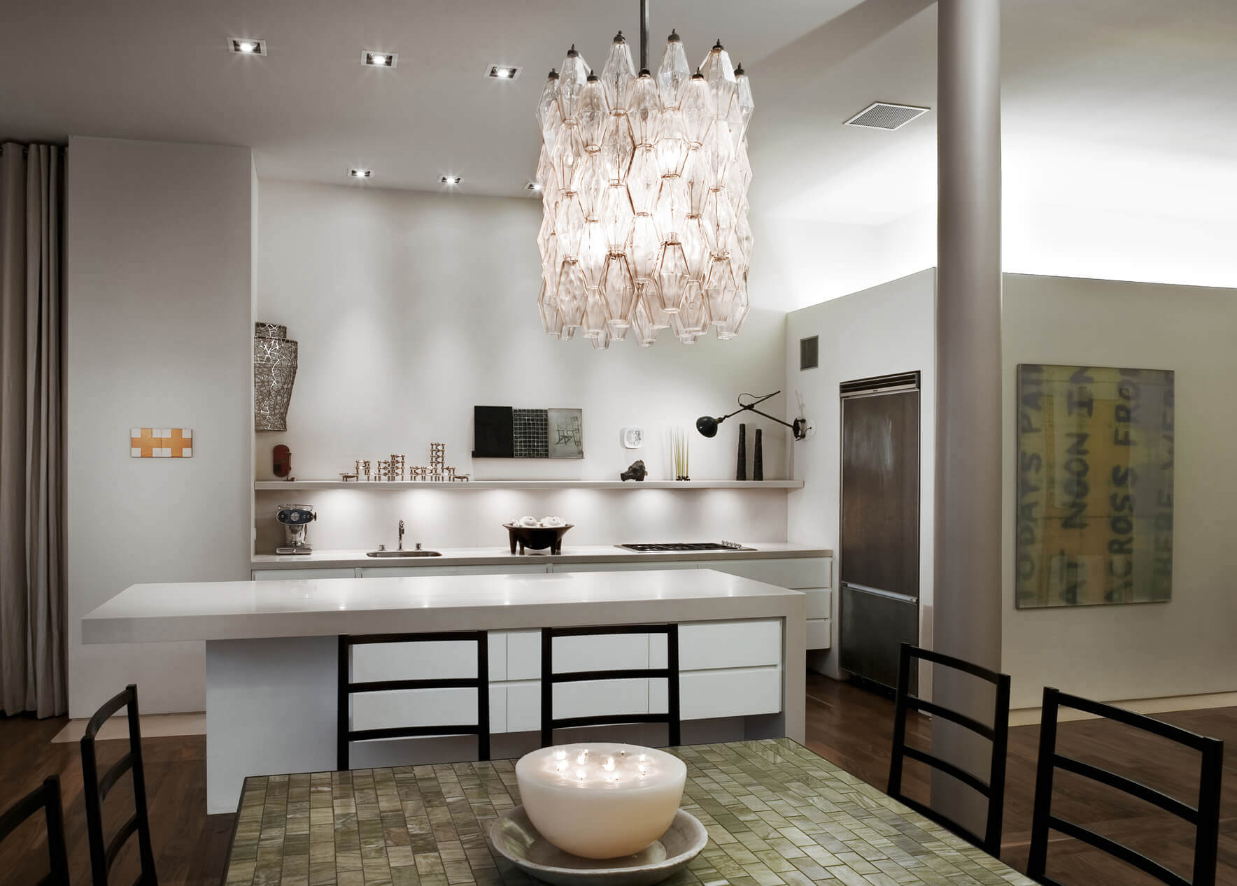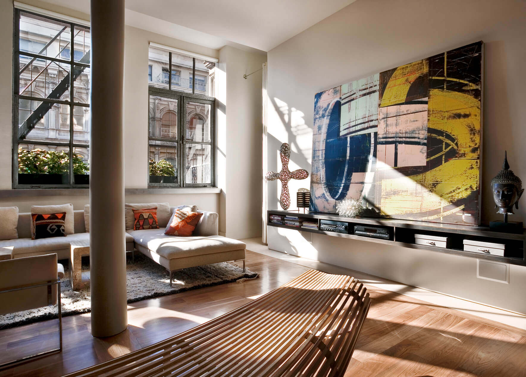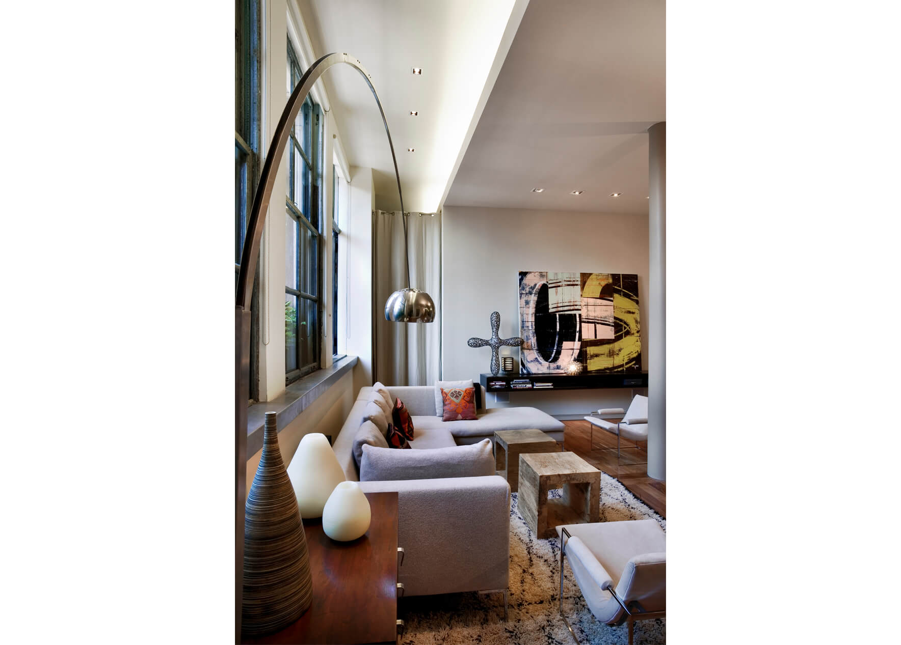 This 3,000 square foot Union Square Loft follows the model of an Atrium house with a perimeter of bed and bath functions around an open common area. At the center, the kitchen is designed to resemble furniture and communal spaces blended together. A balance of natural and artificial light keeps an open loft feeling well into the interior of the space.